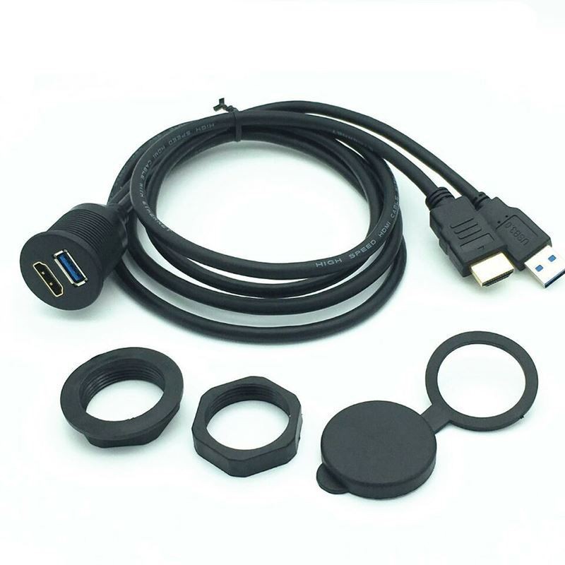 Dan IP67 HDMI USB3.0 AUX Dashboard Waterproof Cable jista 'jkun adattat ma' Karozza, Dgħajsa u Mutur, Dash Mount bil-Port USB u HDMI.